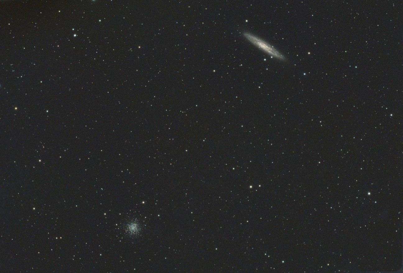 The Sculptor galaxy NGC253 along with globular cluster NGC288.